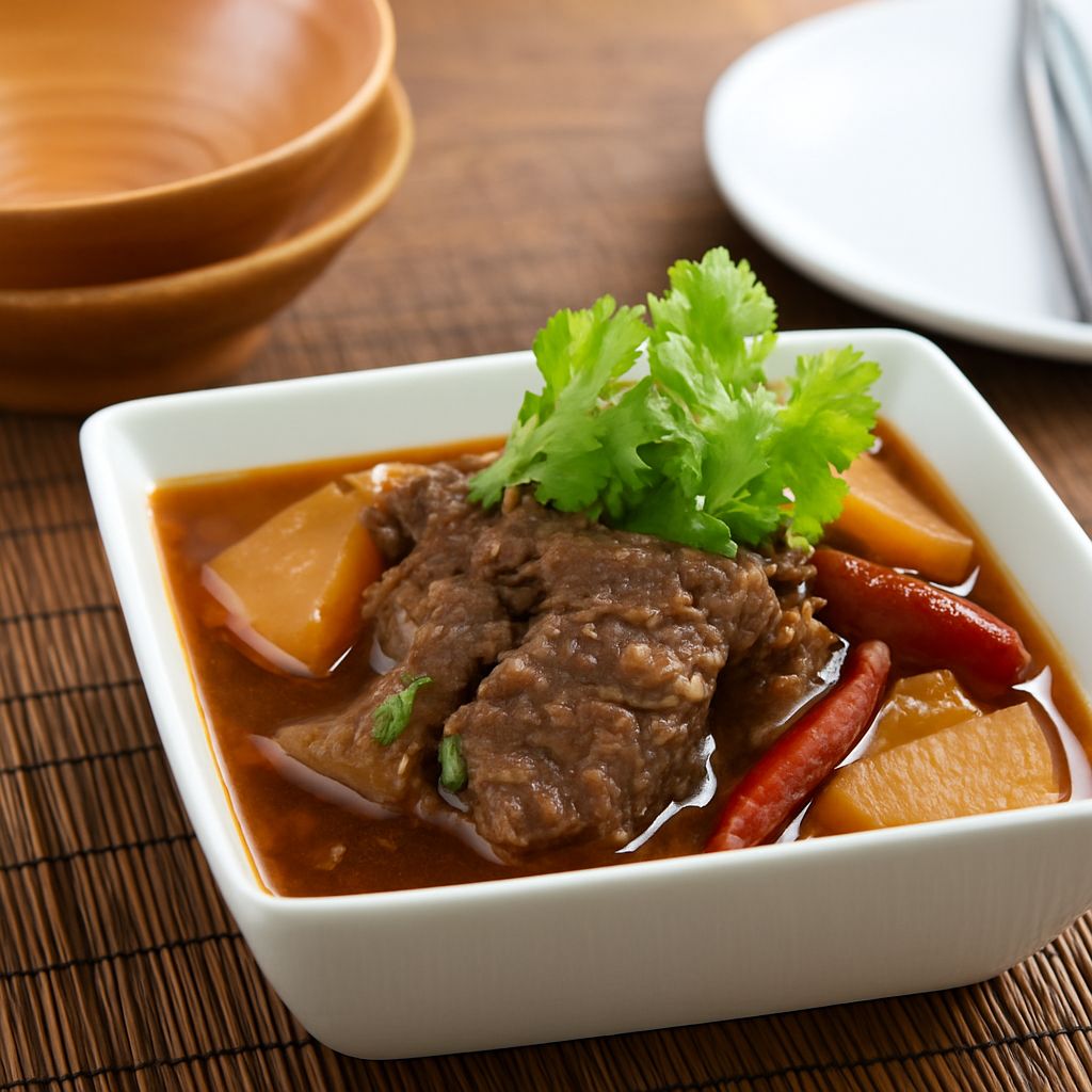 This slow cooking method ensures the meat is incredibly tender, absorbing the rich flavors of the broth and vegetables.